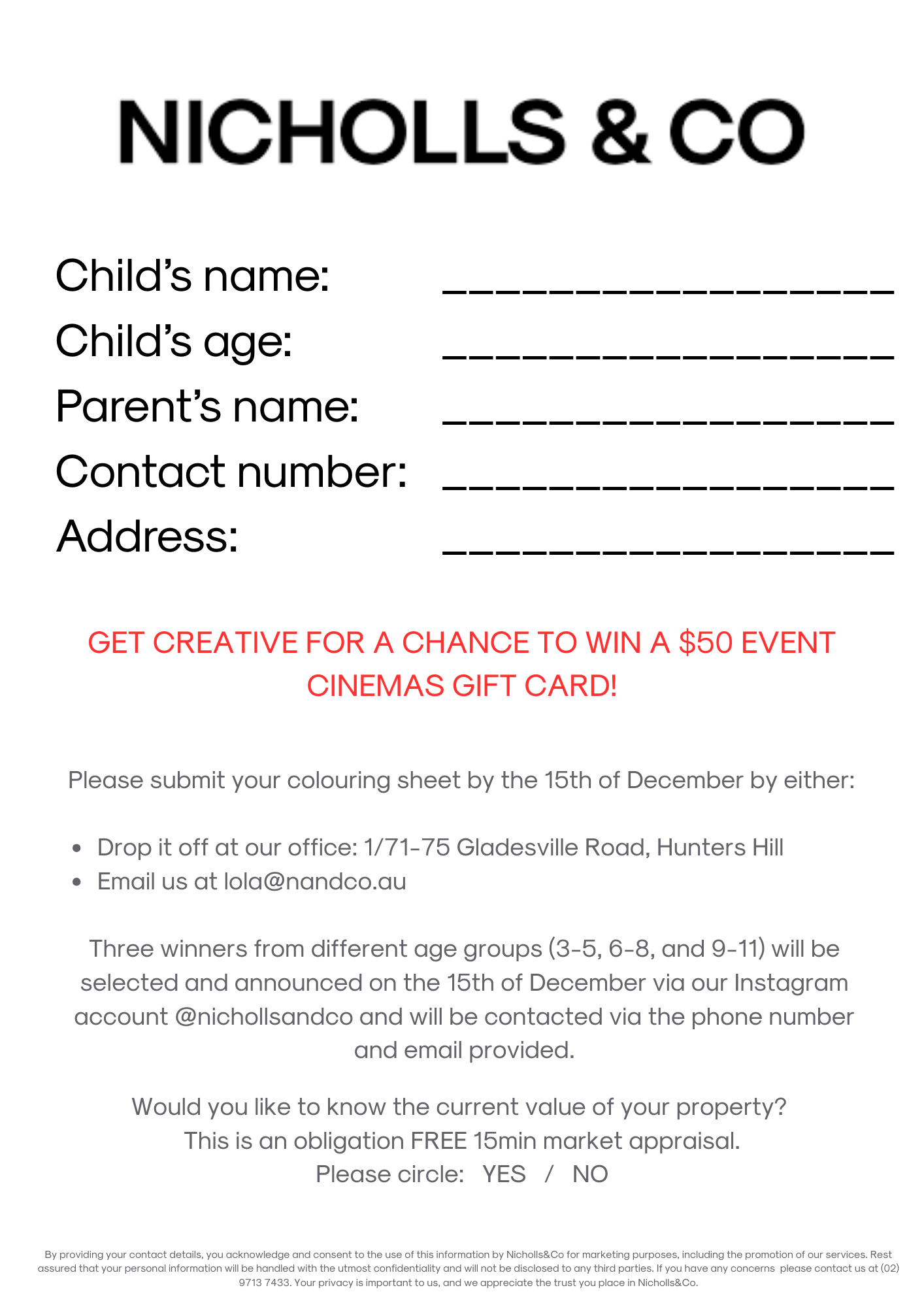 Three winners from different age groups (3-5, 6-8, and 9-11) will be selected and announced on the 15th of December via our Instagram account @nichollsandco and will be contacted via the phone number and email provided.